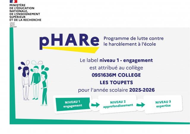 Actuellement, le collège est labellisé pHARe - Niveau 1 Engagement