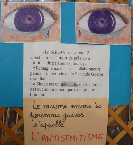 Monsieur Drouère a préparé des panneaux en lien avec la séquence sur la Shoah des élèves de 3e.