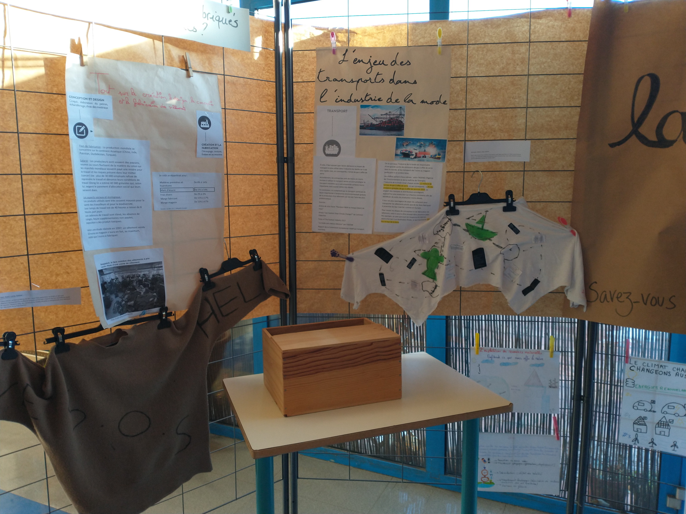 Pendant la Semaine Européenne de Réduction des Déchets, les classes de 3e3 et 3e2 de Mme Ragueneau et de Mme Hillairet se sont mobilisées pour informer leurs camarades sur la catastrophe écologique et humaine que représente la surconsommation de vêtements.